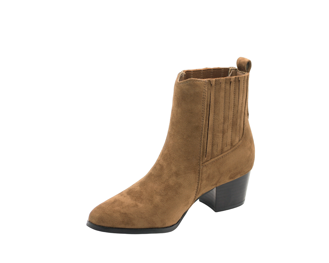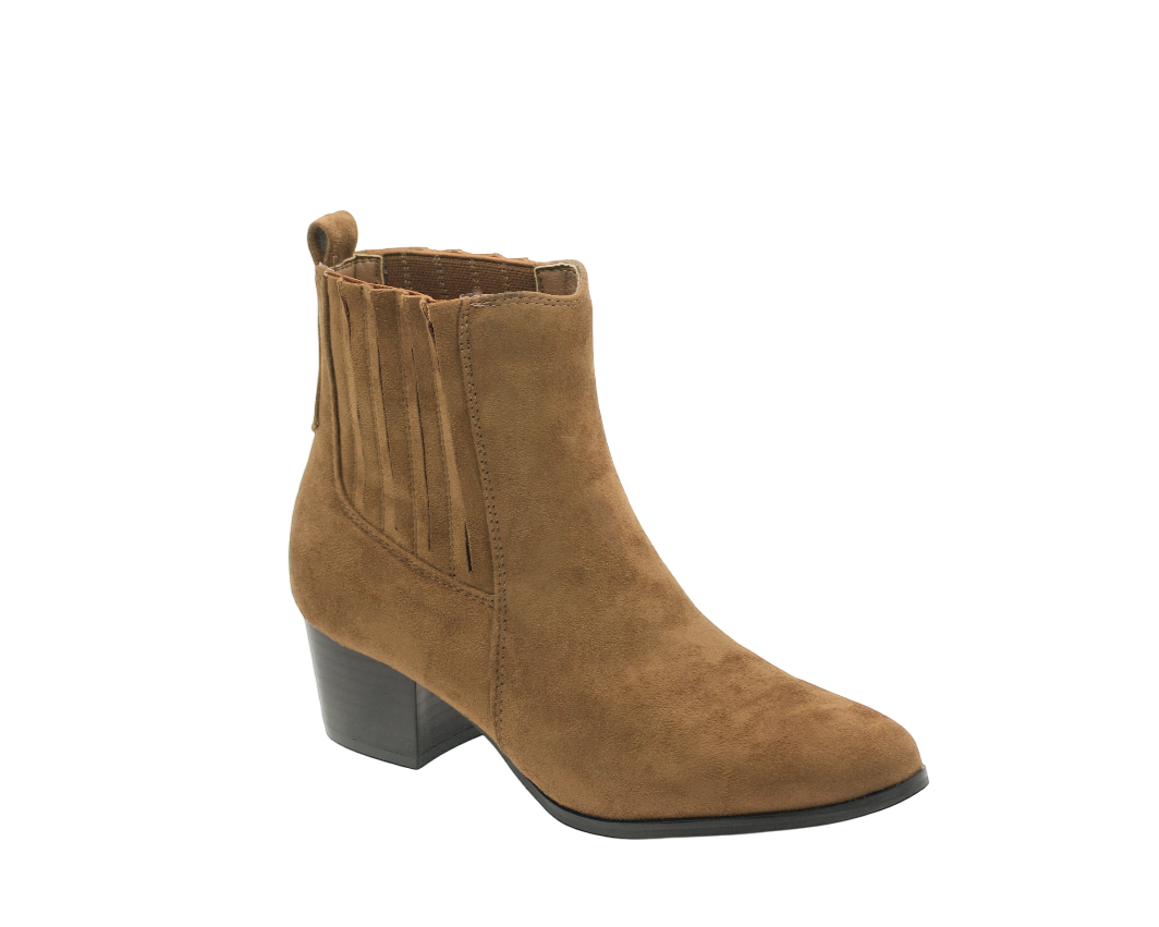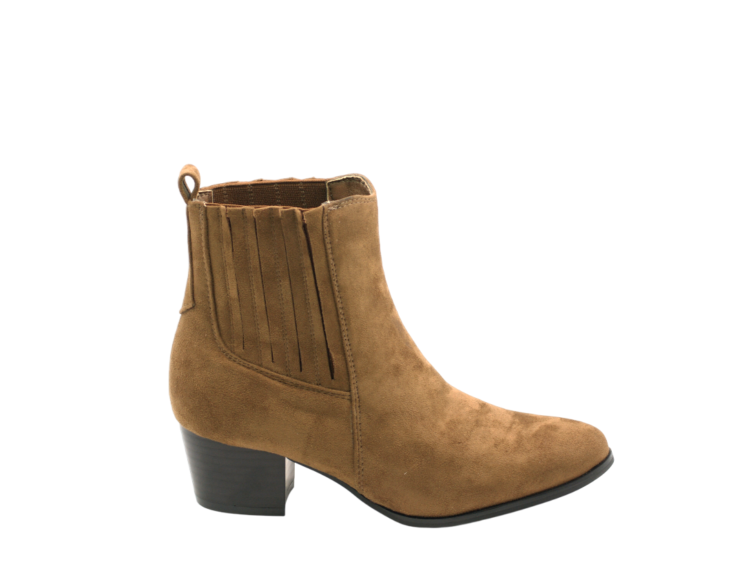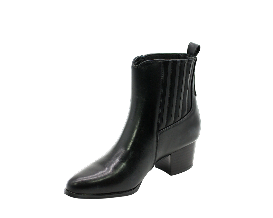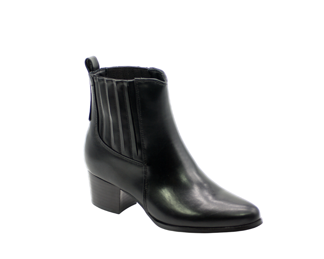 Bota com design clássico, elegante e intemporal. Com pormenor de canelado lateral para um toque diferente. Salto médio com cm de altura e puxador traseiro para facilitar o calçar.