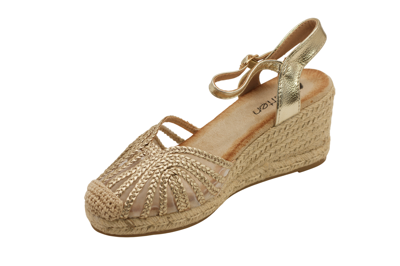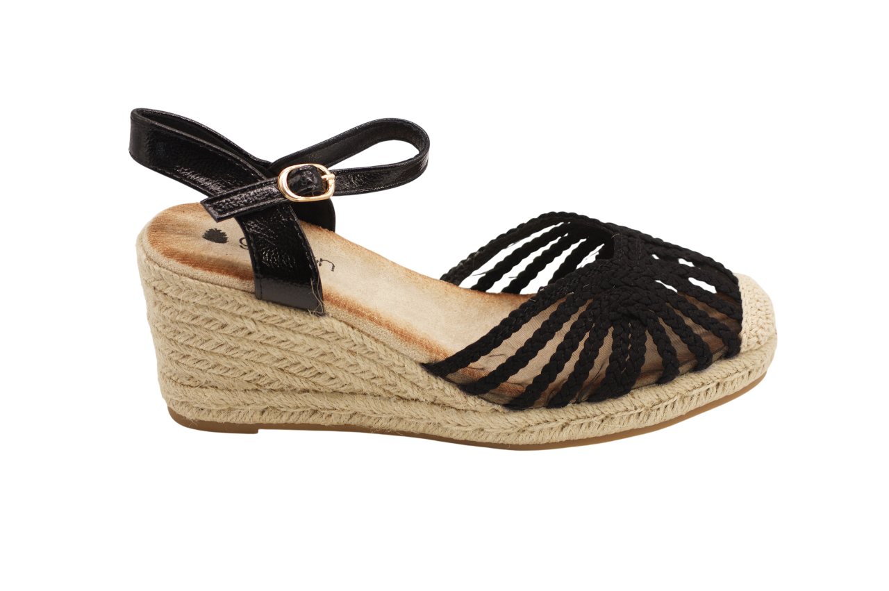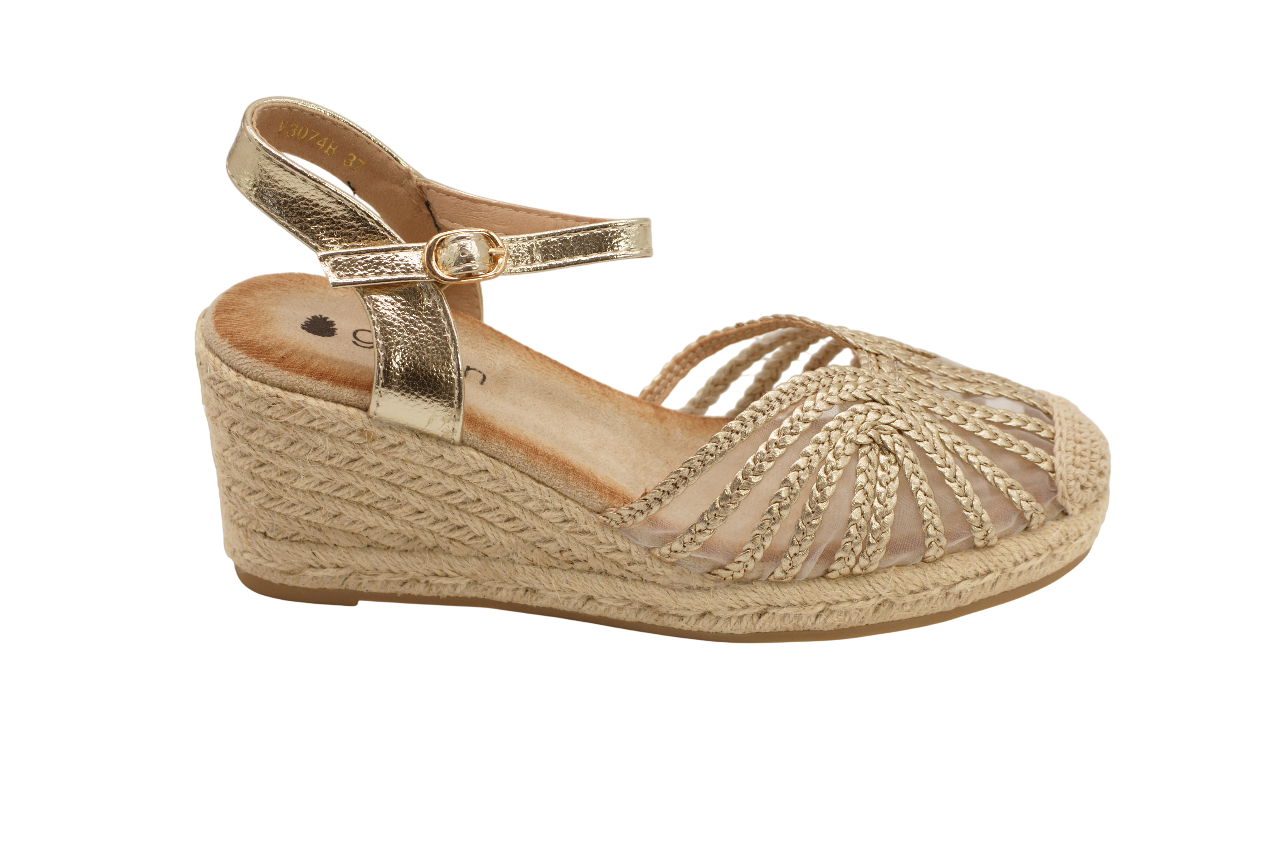 A sandália de cunha 3074 tem um design moderno e elegante, ideal para os dias mais quentes. O modelo apresenta um padrão entrançado na parte frontal que proporciona um toque distintivo e maior respirabilidade. A cunha em estilo corda oferece altura com estabilidade, enquanto a palmilha confortável garante bem-estar ao longo do dia. O fecho com fivela no tornozelo permite um ajuste seguro e prático, tornando esta sandália perfeita para completar looks com estilo e conforto.